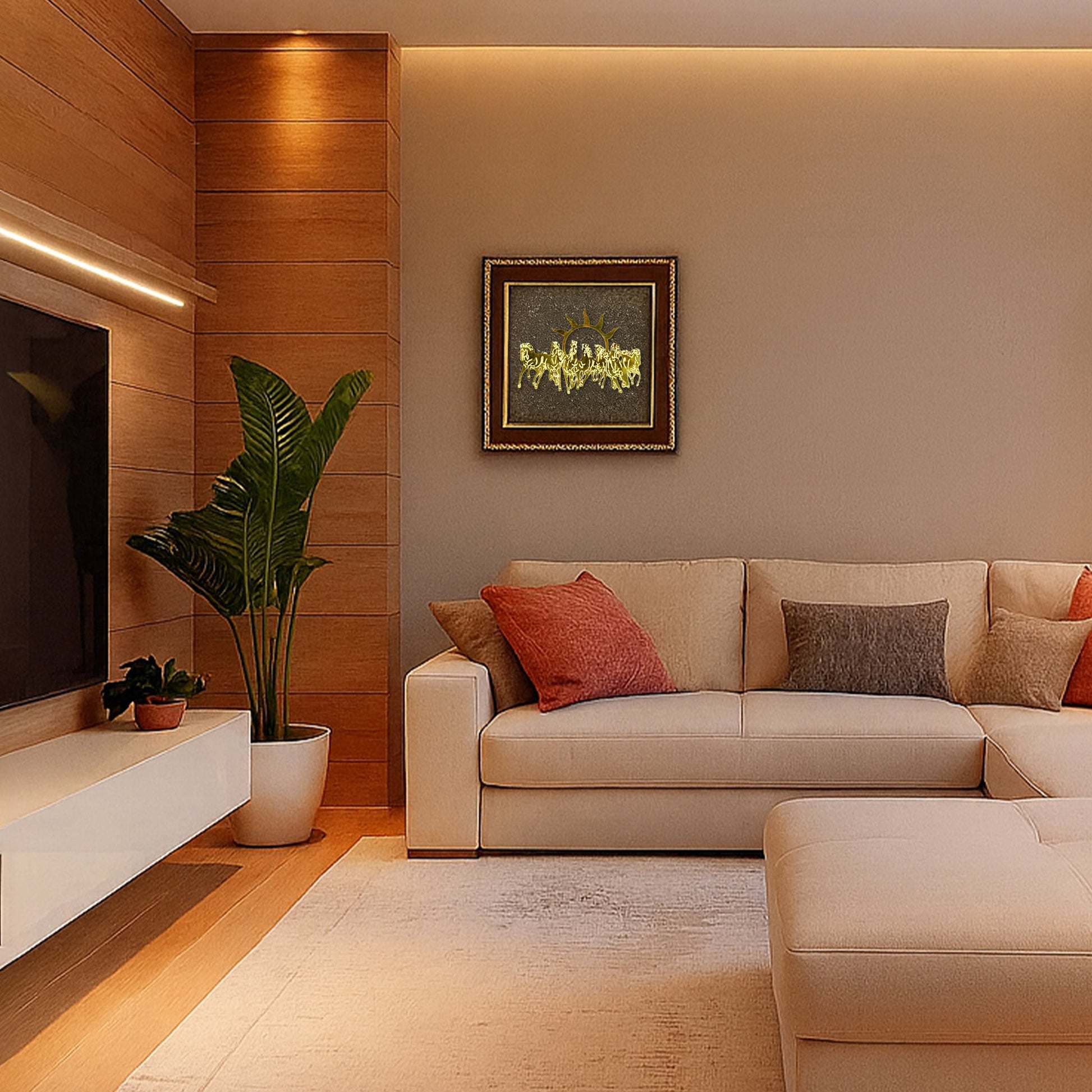 The 7 Horses Raw Pyrite Frame β Abhimantrit is a powerful vastu and money symbol for fast growth, success and wealth πβ¨. The 7 horses represent speed, progress and victory, while raw Pyrite is known as the money stone that attracts wealth, confidence and strong positive energy. Together, they create a strong energy for success and financial growth.