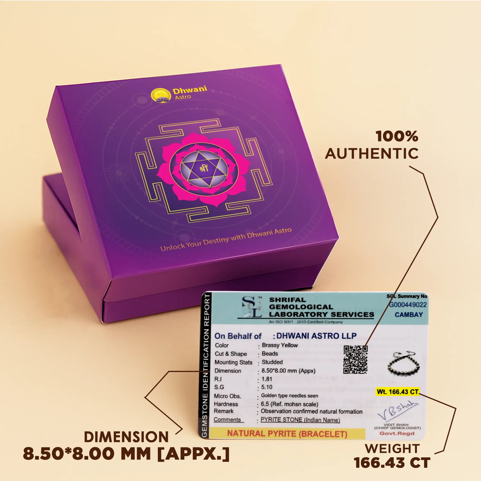 The Pyrite Thread Bracelet - Abhimantrit & Certified is made to attract money, luck, and quick success. Pyrite is known as the Stone of Fortune and helps remove money blocks, bring new opportunities, and support steady financial growth. Its golden energy keeps you positive and confident. 💰✨