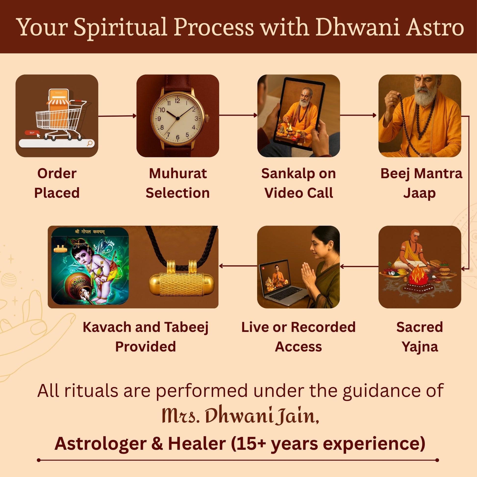 The Shri Gopal Kavach - Abhimantrit is a special blessing for couples who want to have a baby. It helps those who are struggling to become parents by bringing God blessings. This kavach fills the home with happiness, protection, and good energy, making it a peaceful and hopeful place.