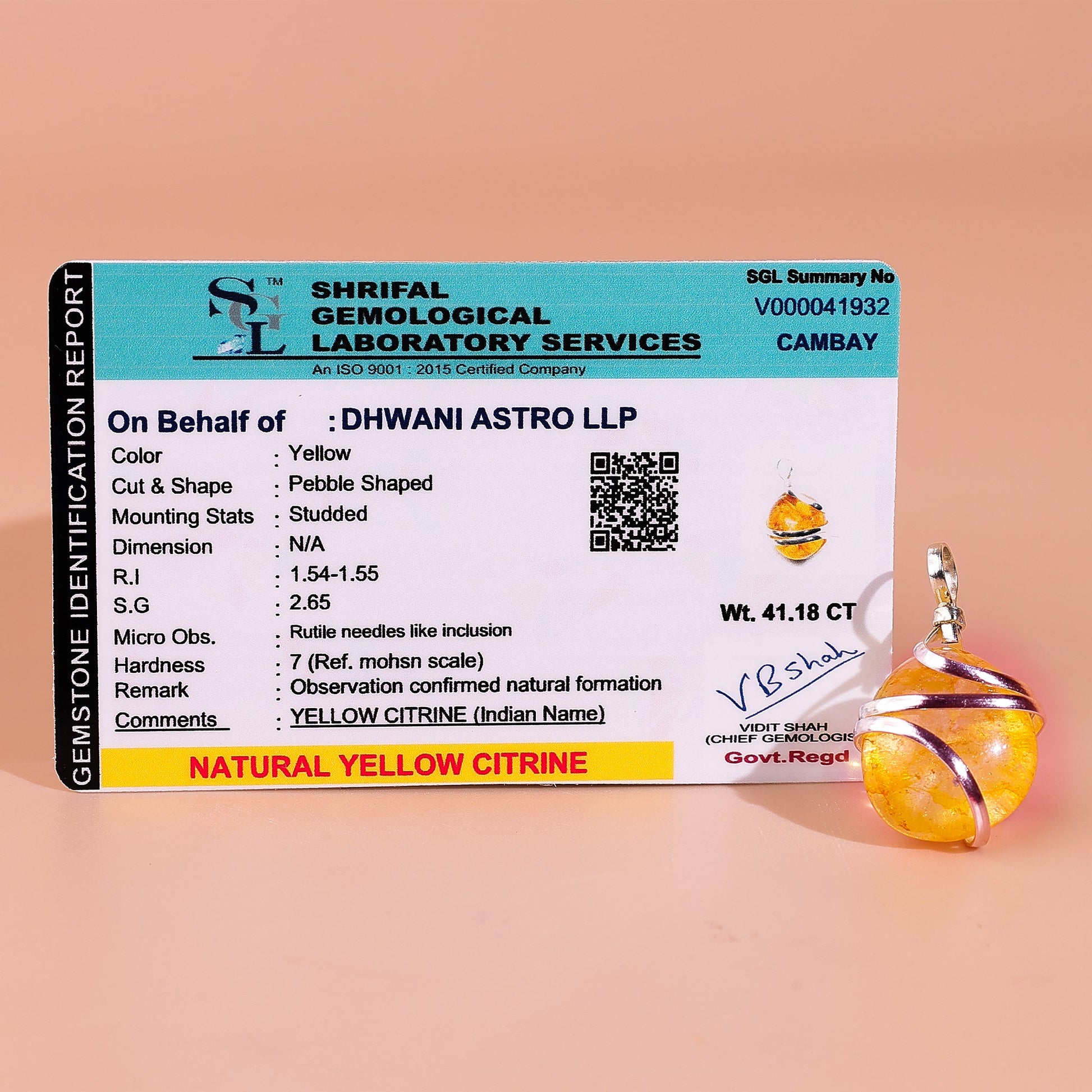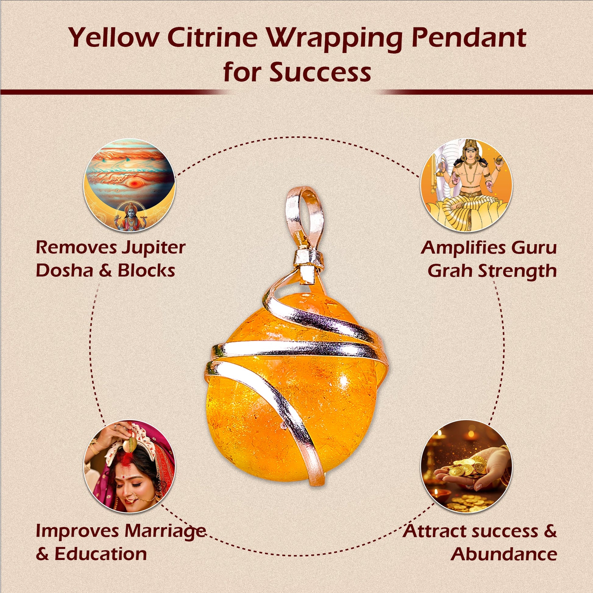 This Yellow Citrine Wrapping Pendant - Abhimantrit & Certified is specially made for those seeking success, prosperity, and growth in their job, business or studies.